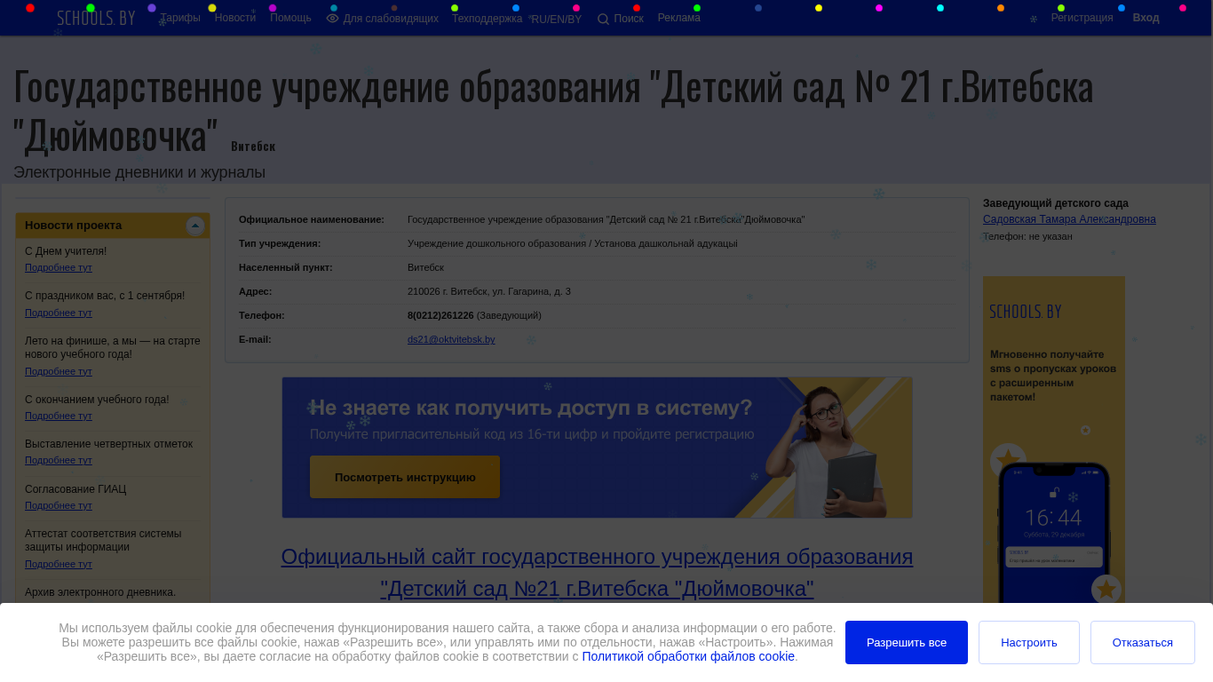 | Название / Заголовок | Государственное учреждение образования "Детский сад № 21 г.Витебска "Дюймовочка" |