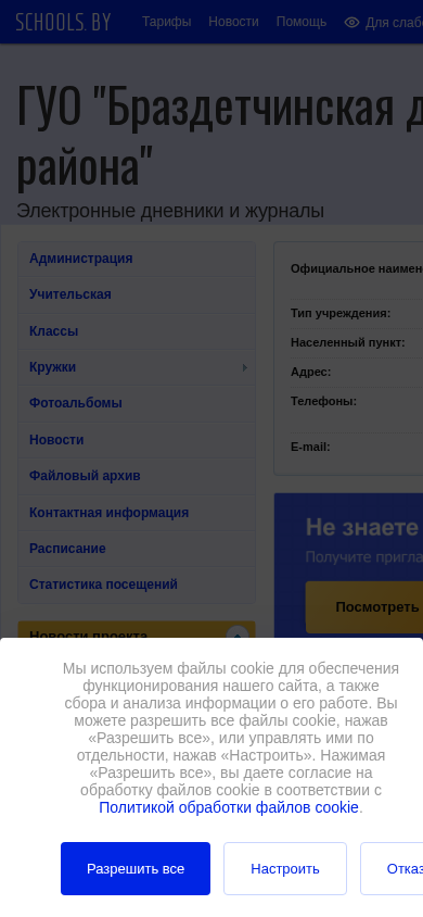 | AI-анализ | The portal is an educational website for the "Brazdetchinskaya Detsky Sad - Base School of Orshansky Raion" in Belarus. The site uses cookies for the site's functionality and data collection and analysis. Visitors can allow all cookies or manage them individually. The policy for cookie handling is provided for review. The site's domain is brazd171.schools.by. |