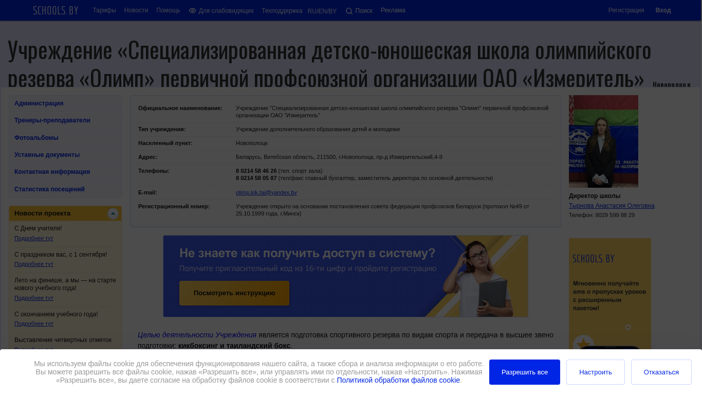 | Название / Заголовок | Учреждение «Специализированная детско-юношеская школа олимпийского резерва «Олимп» первичной профсоюзной организации ОАО «Измеритель» |