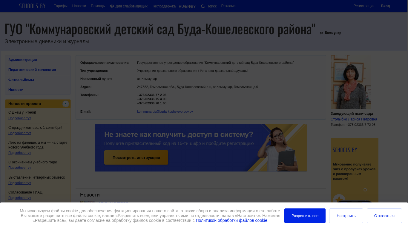| Название / Заголовок | ГУО "Коммунаровский детский сад Буда-Кошелевского района" |