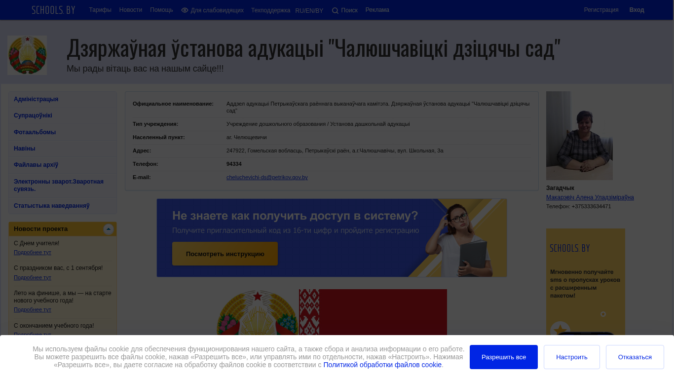 | Название / Заголовок | Дзяржаўная ўстанова адукацыі "Чалюшчавіцкі дзіцячы сад" |