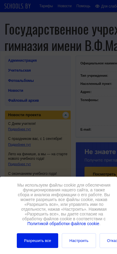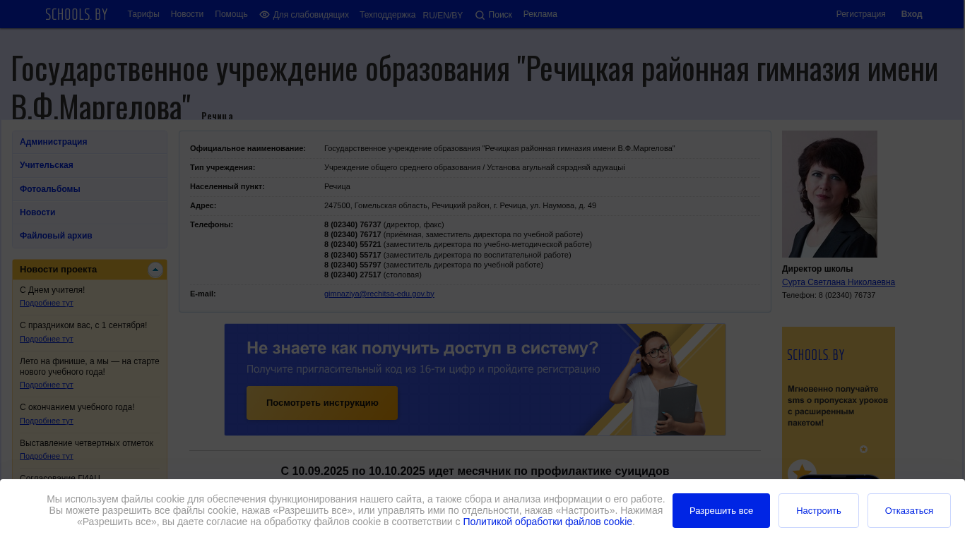 | Название / Заголовок | Государственное учреждение образования "Речицкая районная гимназия имени В.Ф.Маргелова" |