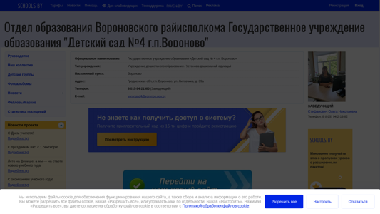 | Название / Заголовок | Отдел образования Вороновского райисполкома Государственное учреждение образования "Детский сад №4 г.п.Вороново" |