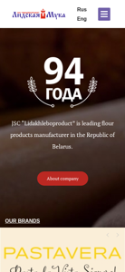 | AI-анализ | Описание: ОАО "Лидахлебопродукт" - лидер в производстве муки в Беларуси. Предлагает различные виды муки: пшеничную, рожную, высокогорную, полуготовые мучные изделия и макароны. Возможно заказывать муку в Беларуси или в крупных объемах. Description: OAO "LidaHleboproduct" - the leading flour mill in Belarus. Offers various types of flour: wheat, rye, high-grade, semi-finished flour products, and macaroni. Purchase flour in Belarus or in bulk. Company name: ОАО Лидахлебопродукт Website: muka.by |