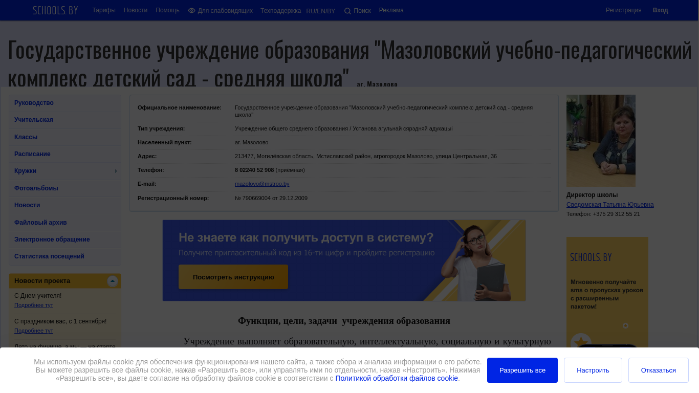 | Название / Заголовок | Государственное учреждение образования "Мазоловский учебно-педагогический комплекс детский сад - средняя школа" |
