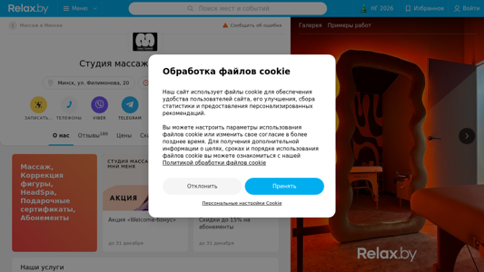 | SEO-описание | Студия массажа Мни Меня в Минске – отзывы, телефоны, график работы и карта проезда на Relax.by |