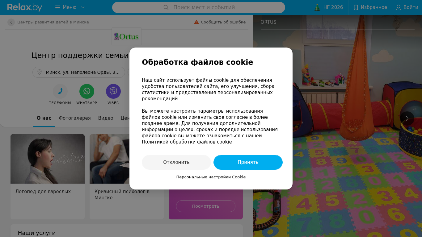 | SEO-описание | Центр поддержки семьи и детей ORTUS (ОРТУС) в Минске – отзывы, адрес на карте, телефоны, график работы и карта проезда на Relax.by |