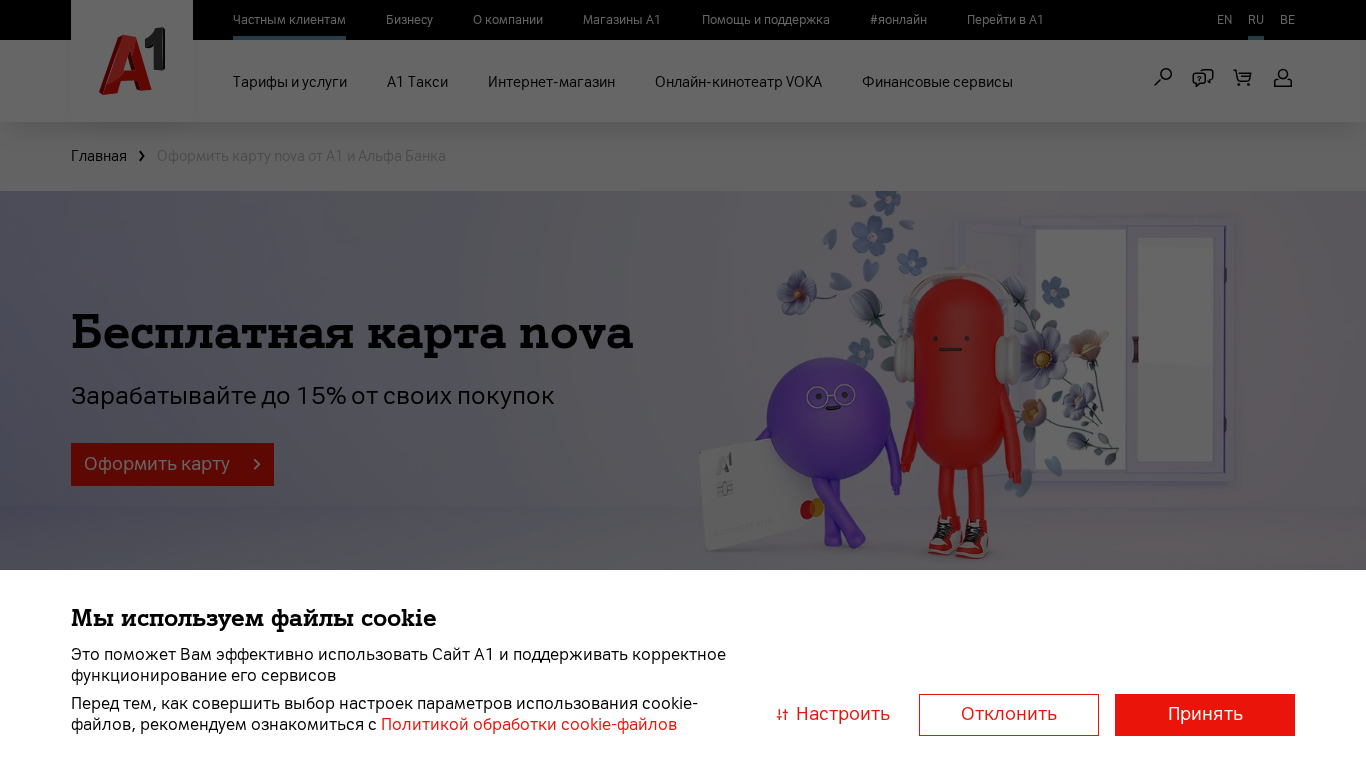 | Название / Заголовок | Оформить карту nova от А1 и Альфа Банка | A1 - провайдер телеком-, ИКТ- и контент-услуг |