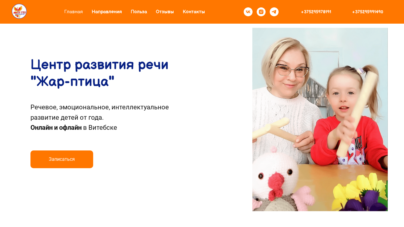 | SEO-описание | Детский центр развития речи «Жар-Птица» предлагает все самое полезное и интересное для детей от 8 месяцев до 12 лет. |