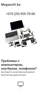 | SEO-описание | Megasoft.by Megasoft.byРемонт цифровой техники ремонт ноутбуков, компьютеров, телефонов. Установка виндовс, Замена стекла Боровляны, Лесной, Зелёный бор |
