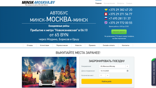 | SEO-описание | 🚐 Автобус, Минск-Москва-Минск. Звоните: ☎ +375 (29) 271-56-77 ☎ +7 (495) 281-51-37 |