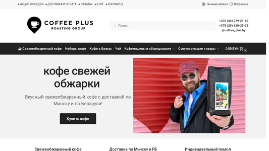 | SEO-описание | Купить кофе в интернет-магазине Coffee Plus. Свежеобжаренный кофе в зернах и молотый, арабика и робуста по выгодной цене. Широкий выбор и доставка по Минску и Беларуси. |