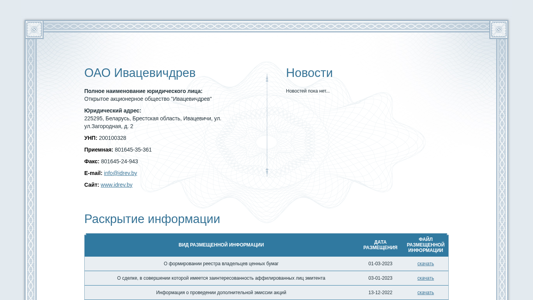 Сайт: ivacevichdrev.epfr.by — HTTP 200 (OK)