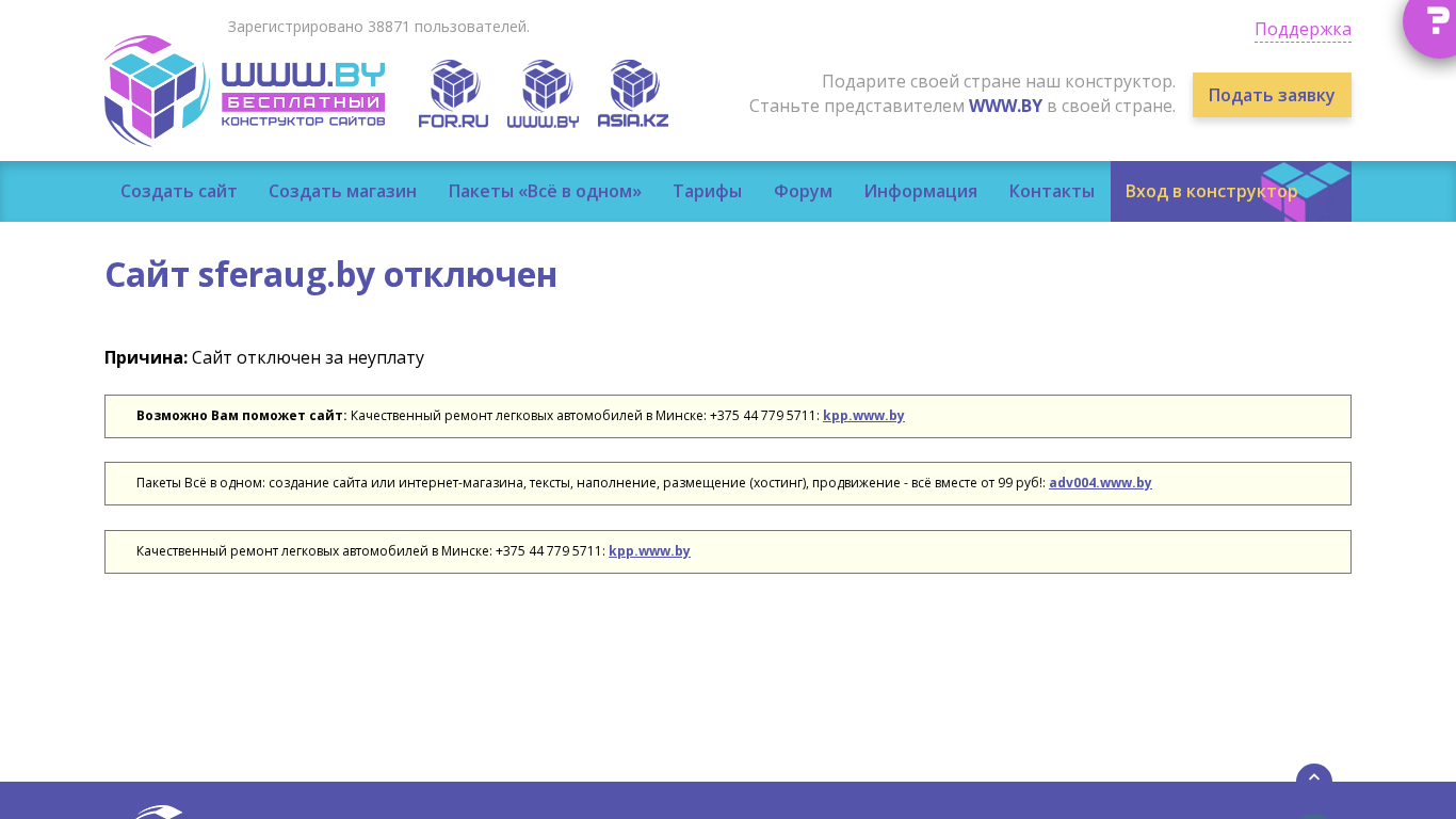| Название / Заголовок | Сайт отключен |