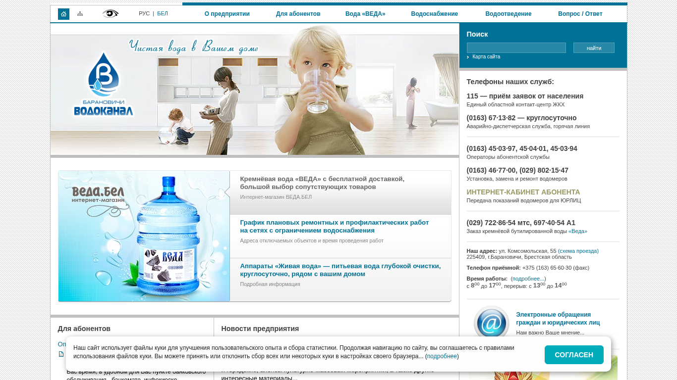 | Название / Заголовок | ВОДОКАНАЛ г.Барановичи - Главная |