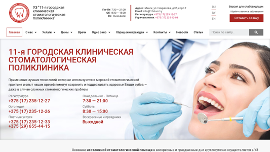 | Название / Заголовок | 11-я Стоматологическая поликлиника в Минске | Лечение зубов Минск |