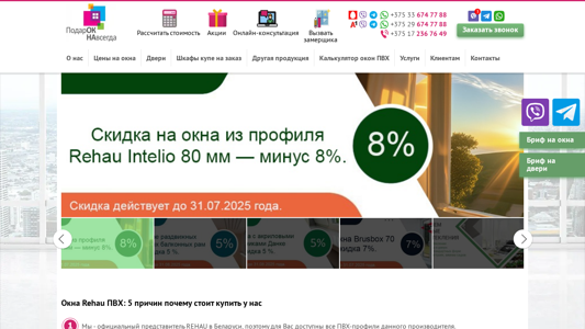 | Название / Заголовок | Окна Рехау купить в Минске, цена на окна ПВХ Rehau — «Подарок навсегда» |