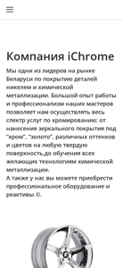| AI-анализ | This online resource is a website dedicated to chrome plating and chemical metalization services in Minsk, Belarus. The title of the website is "Хромирование минск | Хромирование дисков | Хромирование деталей в минске - Хромирование" (Chroming Minsk | Chroming Disks | Chroming Details in Minsk - Chroming). The description contains keywords such as 'хромирование' (chroming), 'для' (for), 'дисков' (disks), 'деталей' (details), 'работы' (work), 'как' (as), '66-88-227', 'услуги' (services), 'восстановление' (restoration), 'химической' (chemical), and ' |