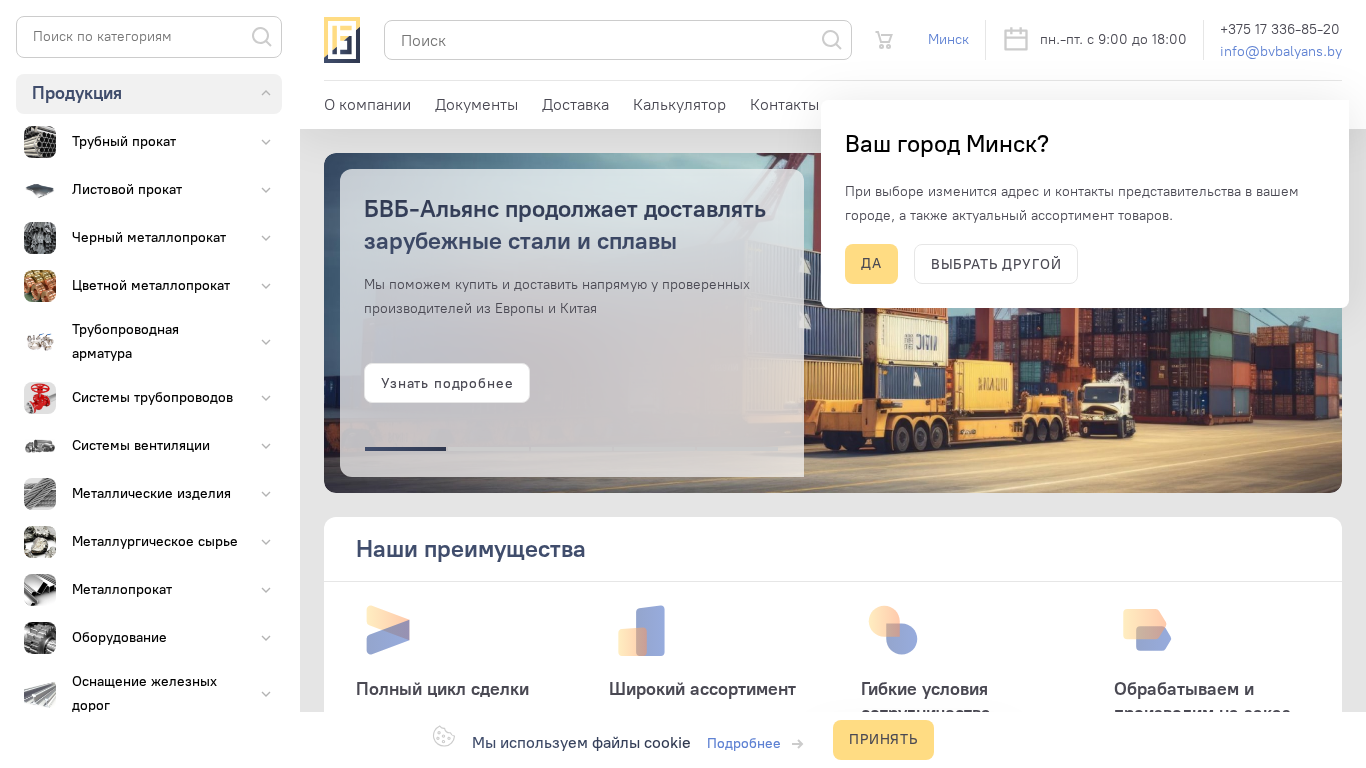 | Название / Заголовок | ООО БВБ-Альянс — крупный металлотрейдер и универсальный поставщик в г. Минск |