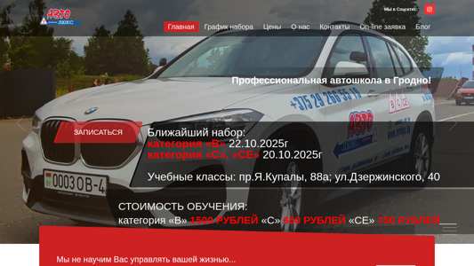 | SEO-описание | Первая частная автошкола в Гродно по подготовке водителей категории "В". Огромный опыт (работаем с 1996 года). Обучение на права по доступным ценам. |