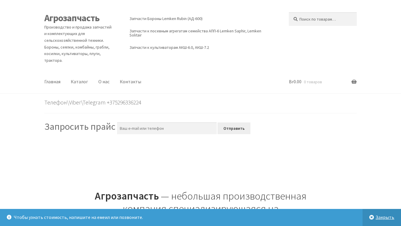 | Название / Заголовок | Агрозапчасть — Производство и продажа запчастей и комплектующих для сельскохозяйственной техники. Бороны, сеялки, комбайны, грабли, косилки, культиваторы, плуги, трактора. |
