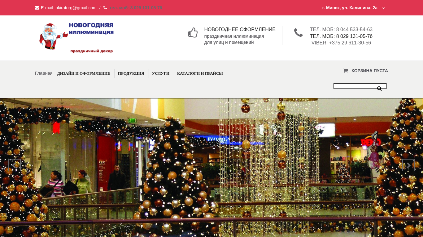 | Название / Заголовок | ЧТУП «АКИРА» поставщик праздничной и новогодней продукции в Беларуси. Новогоднее оформление, иллюминация и украшения. Услуги. Цены |aki.by |