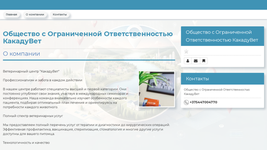 | SEO-описание | Общество с Ограниченной Ответственностью КакадуВет - , +375447004770 |