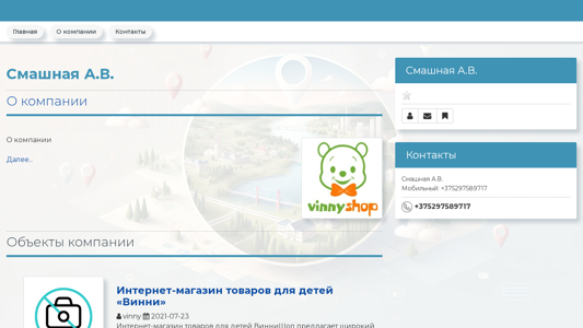 | SEO-описание | Смашная А.В. - Юридический адрес, +375297589717 |