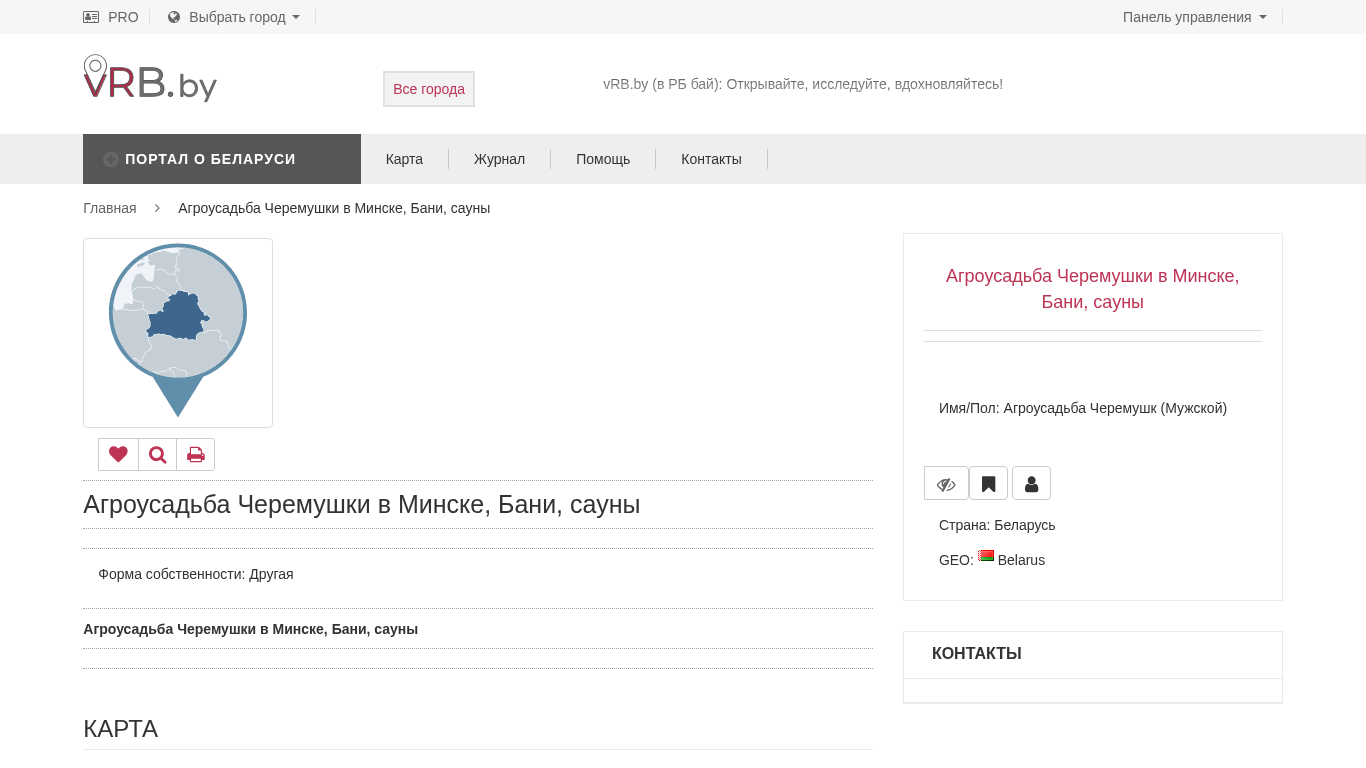 | Название / Заголовок | Агроусадьба Черемушки в Минске, Бани, сауны - vRB.by (в РБ бай): Портал о Беларуси |