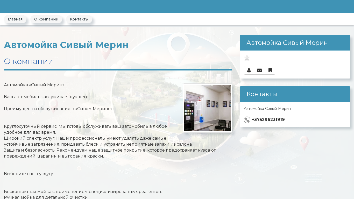 | SEO-описание | Автомойка Сивый Мерин - , +375296231919 |