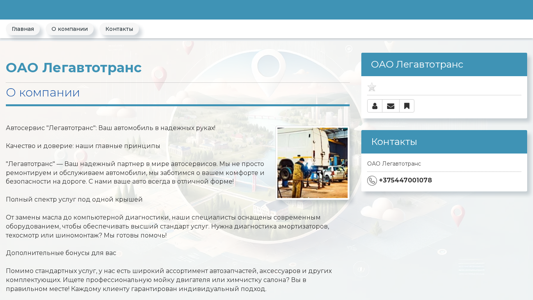 | SEO-описание | ОАО Легавтотранс - г. Минск,ул. Тимирязева, д.46, +375447001078 |