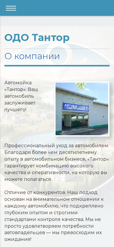 | SEO-лексика | тантор одо компании главная контакты автомойка качества ваш автомобиль уход автомобилем более услуги мойка удаление кузова салона чтобы заслуживает лучшего |