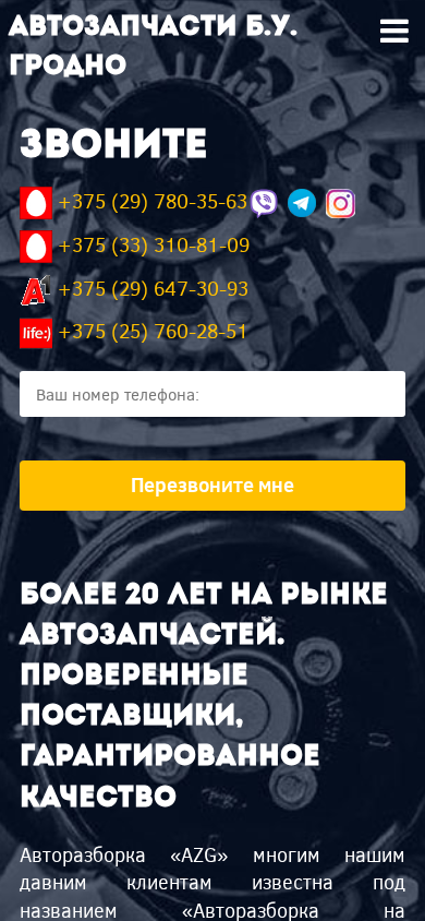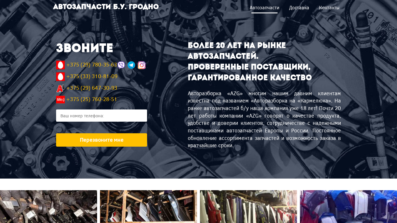 | SEO-описание | 20 лет разбираем и доставляем автозапчасти б.у. для различных марок авто в Гродно. Найдем запчасть за 3 дня, если ее нет в наличии. |