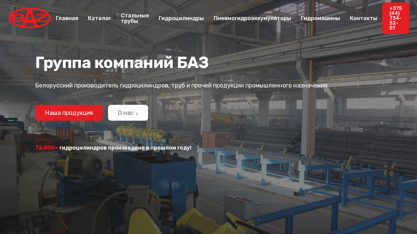 | SEO-описание | Группа компаний БАЗ — белорусский производитель продукции промышленного назначения. Изготовление по техническому заданию заказчика гидроцилиндров, труб, карданных валов и прочей продукции. |