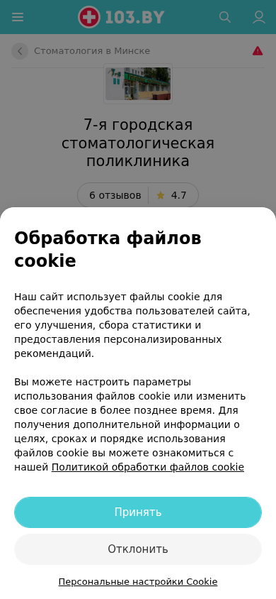 | Название / Заголовок | 7-я городская стоматологическая поликлиника г. Минска: телефон регистратуры, адрес, время работы |
