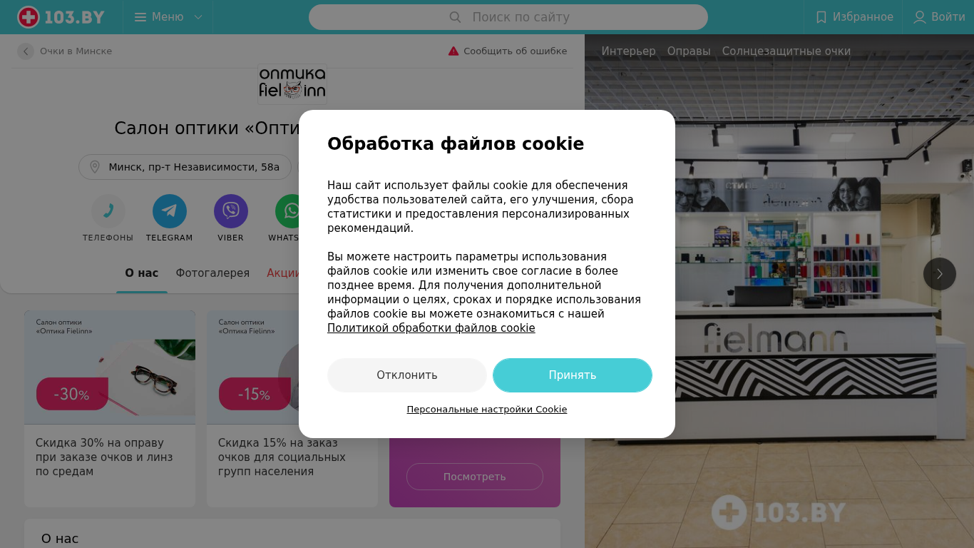 | SEO-описание | Салон оптики Оптика Fielinn (Филин) Минск пр-т Независимости 58а – телефоны, время работы, отзывы и схема проезда в каталоге медицинского портала 103.by. |