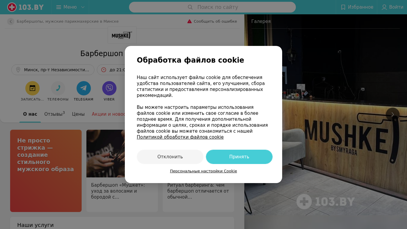 | SEO-описание | Барбершоп Мушкет Минск пр-т Независимости 53 – телефоны, время работы, отзывы и схема проезда в каталоге медицинского портала 103.by. |