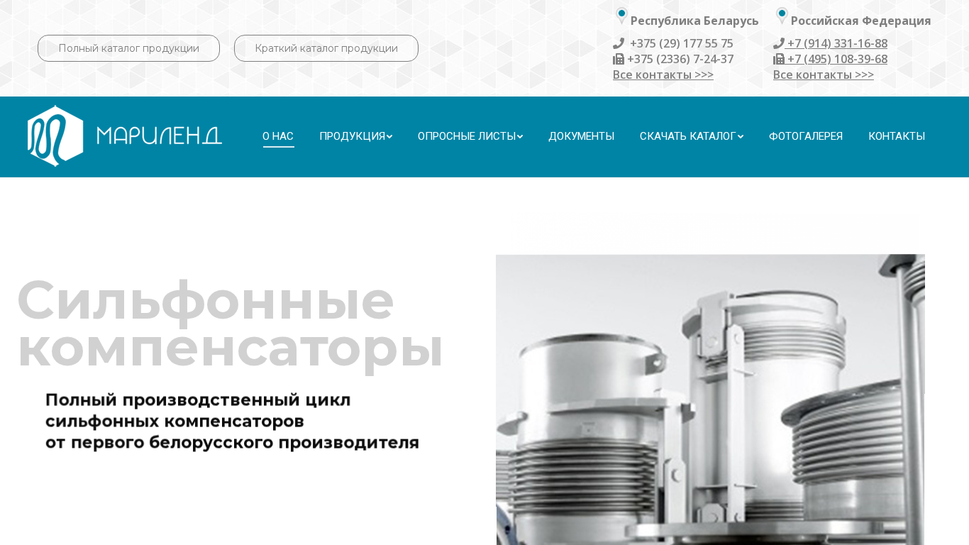 | SEO-описание | Предприятие в Беларуси и СНГ, специализирующееся на производстве сильфонов и сильфонных компенсационных устройствах, гибких гофрированных металлических рукавах, бытовых металлических шлангов. |