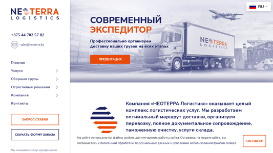 | Название / Заголовок | Международная логистическая и транспортная компания в Минске — доставка транспортной компанией, международные перевозки Минск, Беларусь | Neoterra Logistic |