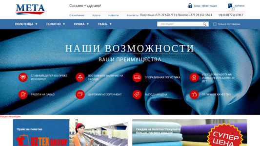 | Название / Заголовок | ООО МЕТА г.ЖОДИНО: ПОЛОТНО И ПРЯЖА купить в Беларуси |