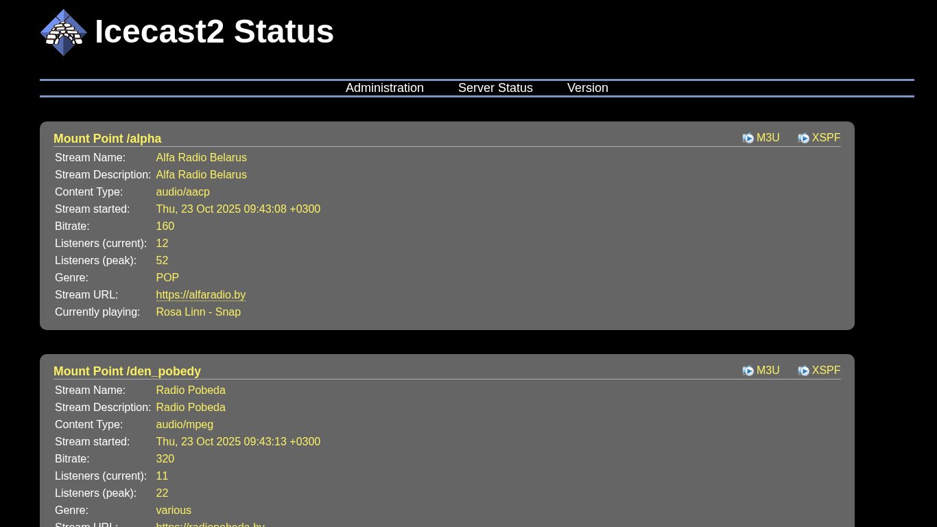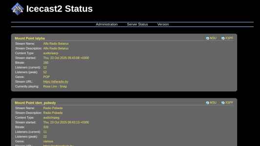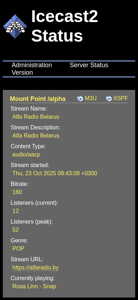 | SEO-лексика | stream radio listeners icecast server status mount point m3u xspf name alfa belarus description content type audio started thu oct |