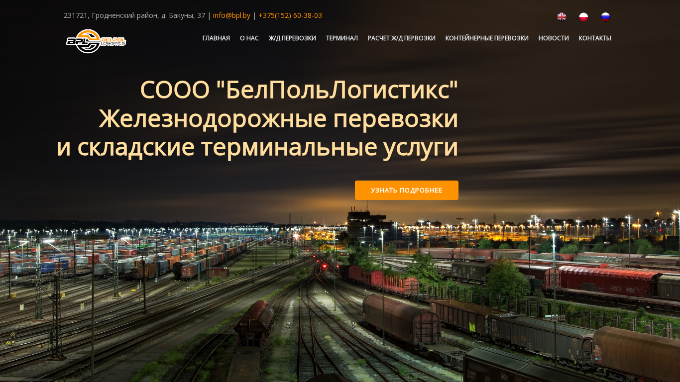 | SEO-описание | Железнодорожные перевозки грузов по Восточной Европе и странам СНГ | Современный терминал и качественный сервис | +375 152 60 38 03 |