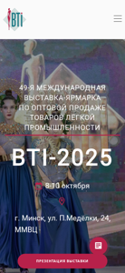 | AI-анализ | Описание: Международная выставка БТИ в Минске — платформа для продаж в розницу продукции легкой промышленности. Ключевые слова: БТИ, промышленность, розничные продажи, выставка, Минск. |