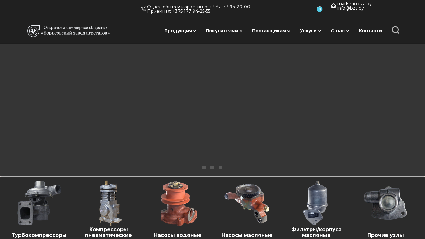 | SEO-описание | ОАО «БЗА» является производителем турбокомпрессоров, компрессоров, масляных и водяных насосов, фильтров и корпусов масляных, приводов тахоспидометра и др. |