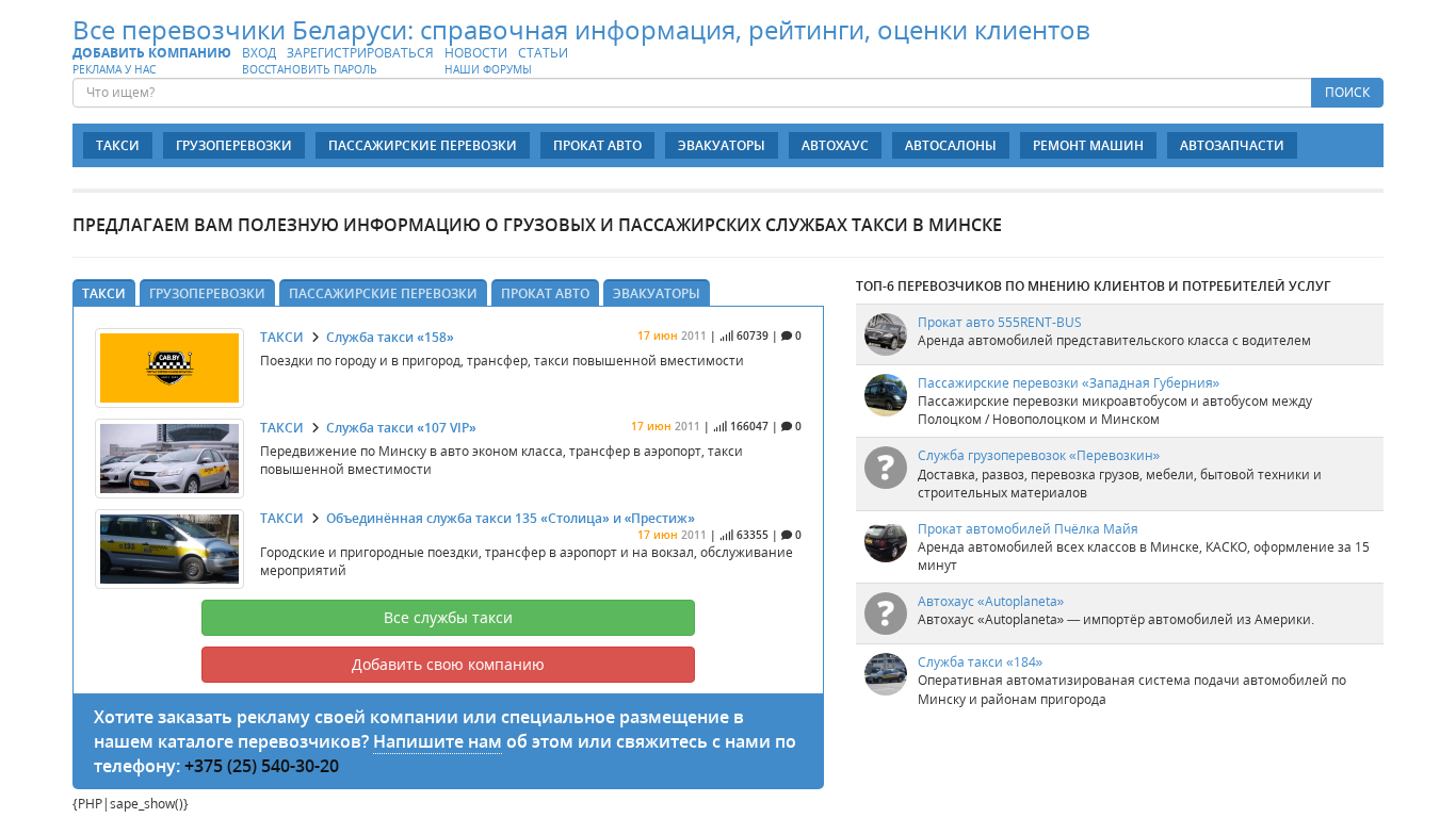 | Ключевые слова | такси службы такси такси минск грузовое такси пассажирские перевозки аренда автомобилей прокат автомобилей автохаусы минска автодилеры сто автозапчасти |
