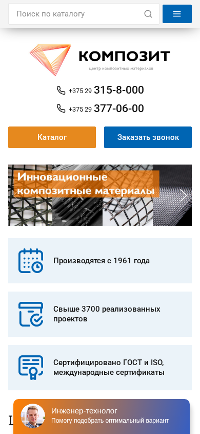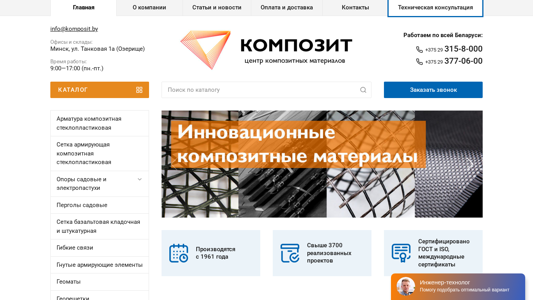 | SEO-описание | Центр композитных материалов — поставка и внедрение композитных материалов в Беларуси. ⭐ Опыт работы более 10 лет! ✈️ Доставка по РБ. ☎️ +375 (29) 315-80-00, +375 (29) 377-06-00. |
