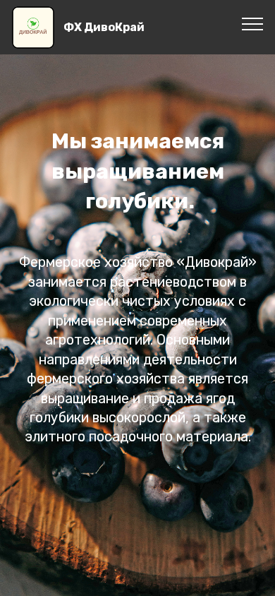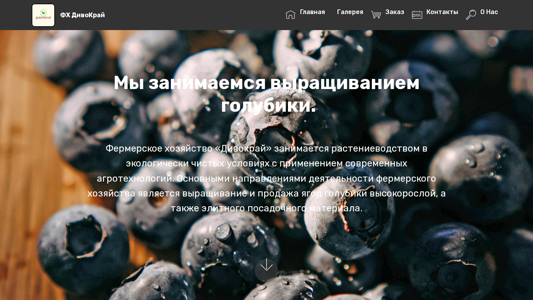 | SEO-описание | Фермерское хозяйство «Дивокрай» занимается растениеводством в экологически чистых условиях с применением современных агротехнологий. Основными направлениями деятельности фермерского хозяйства является выращивание и продажа ягод голубики высокорослой, земляники садовой различных сортов и времени созревания, а также элитного посадочного материала. |