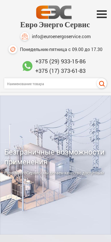 | SEO-описание | ↯ ЕвроЭнергоСервис - производитель и поставщик электрооборудования АВВ и Vacon, устройств НКУ, КТП, ВРУ в Минске. Доставка по Беларуси и СНГ. |