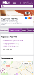 This online resource represents the official website of Uzdensky Les OOO, a company located in Slonim, Brestskaya, Belarus, with the address 231792 and the phone numbers +375 (29) 303 90 xx and +375 (29) 707 51 xx. The main focus of the company is the production of pallet boards, railway sleepers, timber, European pallets, and containers for fruits and vegetables. The website provides contact details and a map for visitors to locate the company, and operates from Monday to Friday, 08:00 to 17:00, except for weekends. The company falls under the category of wood processing and furniture in Belarus, and also appears in other relevant categories such as agriculture and forestry.