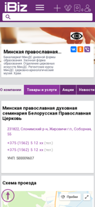 | AI-анализ | The portal is the official website of the Minskaya Pravoslavnaya Dukhovnaya Seminariya (Minsk Orthodox Theological Seminary) of the Belarusian Orthodox Church, offering both daytime and correspondence education programs. The seminary includes departments of church arts, reagent studies, and a church-archaeological museum. Additionally, there is a temple on the premises. The contact information, including address, phone numbers, and UNP, is provided. The website offers various services and features, including news, announcements, job postings, videos, and user reviews. The educational institution can be found in the 'Higher Educational Institutions' and 'Religious Organizations' categories. The location and contact details are also provided for those interested. |